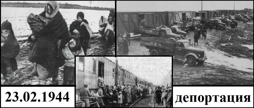 23.02.2024Прошло ровно 80 лет, когда рано утром 23 февраля 1944 года войска НКВД, дав полчаса на сборы, в лютый мороз собрали все население Чечено-Ингушетии от мала до велика и, посадив их в скотские вагоны, отправили в далекую высылку в Казахстан и Среднюю Азию.